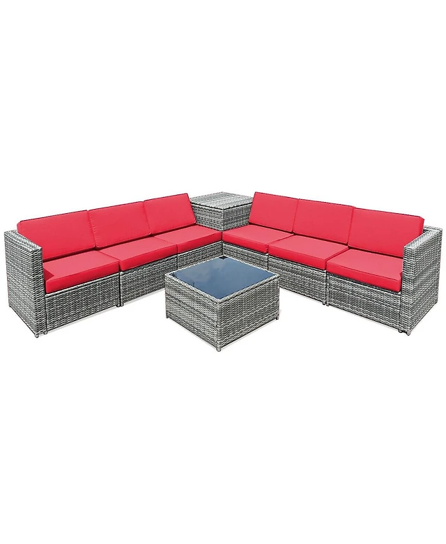 Sugift 8 Piece Wicker Sofa Rattan Dinning Set Patio Furniture with Storage Table-Red