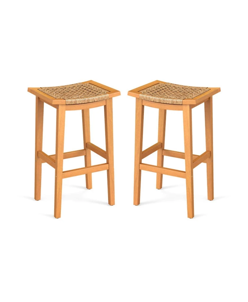 Sugift Acacia Wood Outdoor Bar Stools Set of 2 with Pe Rattan Accents