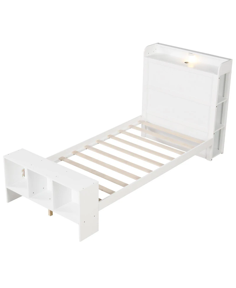 Transform your bedroom with this versatile bed frame featuring adjustable Led lighting in three colors to create the perfect ambiance. With built-in Usb ports and storage shelves, it combines functionality and style. Available in twin and full sizes, the sturdy wooden construction ensures durability and stability, supporting up to 440 lbs.