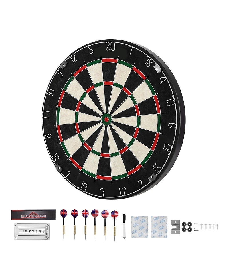 This professional-size dartboard is crafted from premium self-healing sisal fibers that resist shedding and hold darts firmly. Featuring a staple-free bullseye, adjustable number ring, and included scoring accessories, it enhances accuracy and prolongs lifespan. With easy setup and a 17.76"" diameter, it's perfect for family fun, parties, or bar play.