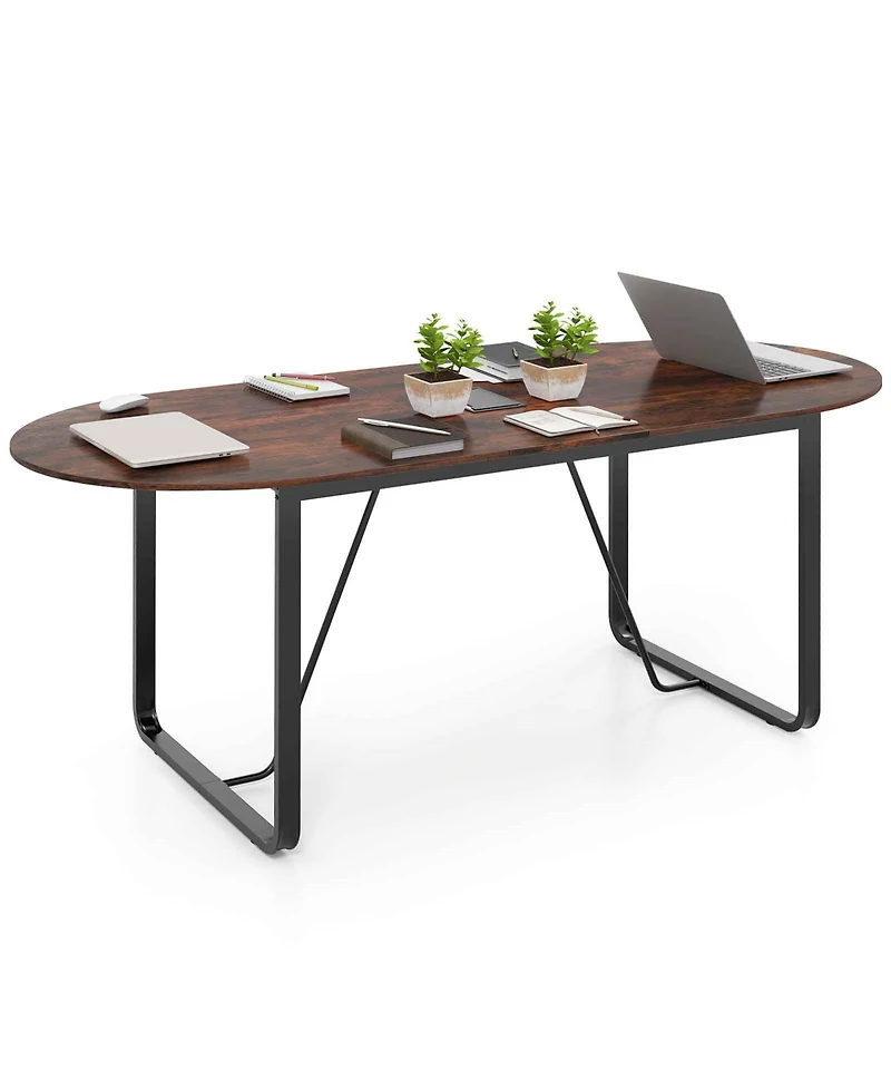Bring a polished, professional look to your workspace with this 71 in. oval executive table built for meetings, teamwork, and daily office use. The spacious 71 in. x 35.5 in. tabletop provides room for laptops, documents, and shared materials, making it a strong fit for conference rooms, training areas, and home offices. A built-in cable management hole helps route cords neatly to keep the surface looking clean and organized. Supported by a heavy-duty metal frame with reinforced supports and adjustable foot pads, the table stays stable on uneven floors and supports up to 265 lbs. With its distinctive oval profile and industrial-inspired tabletop texture, it works as a functional centerpiece that complements modern office interiors.