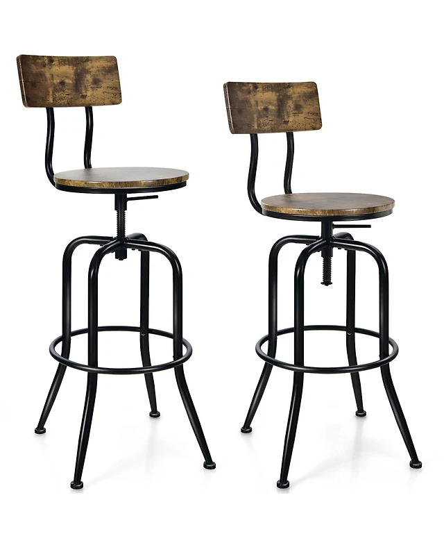 Sugift Industrial Adjustable Swivel Bar Stool with Arc-Shaped Backrest
