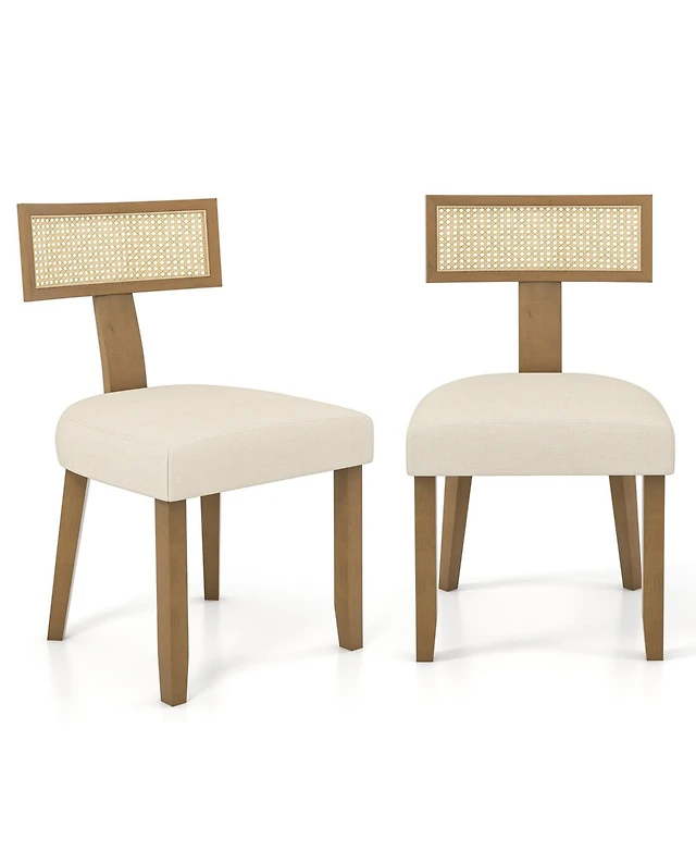 Sugift Set of 2 Linen Fabric Upholstered Accent Dining Chairs with Curved Rattan Backrests-Beige