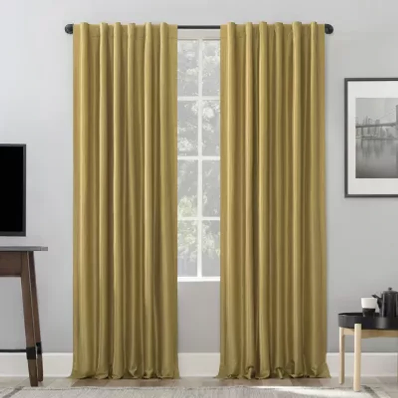 Featuring an elegant dupioni faux silk fabric with a raw slub texture, Evelina faux dupioni silk extreme 100% blackout back tab curtains provide the ultimate in light blocking technology to keep out even the harshest of light while adding opulent radiance to any room of your home. Sun zero extreme blackout thermal lining is laboratory tested to block out 100% of light, reduce outside noise by up to 30%, and decrease energy lost through your windows by up to 40%. Comfort is optimized with thermal properties that help keep summer heat and winter chill out of your home. Hang in your entertainment room to eliminate screen glare and reduce distracting outside noise, or in your bedroom for enhanced privacy and a sounder, more uninterrupted sleep. Sold as individual panels. Measure carefully before selecting your desired size and quantity. Machine wash cold on gentle cycle. Use non-chlorine bleach when needed. Tumble dry on low heat, using a cool iron as needed.