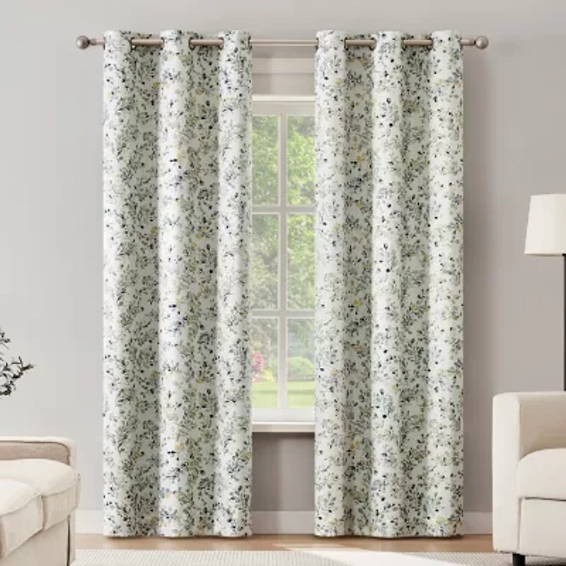 Sun Zero Maureen Painted Foliage Magnetic Closure Grommet Top 100% Blackout Set of 2 Curtain Panel