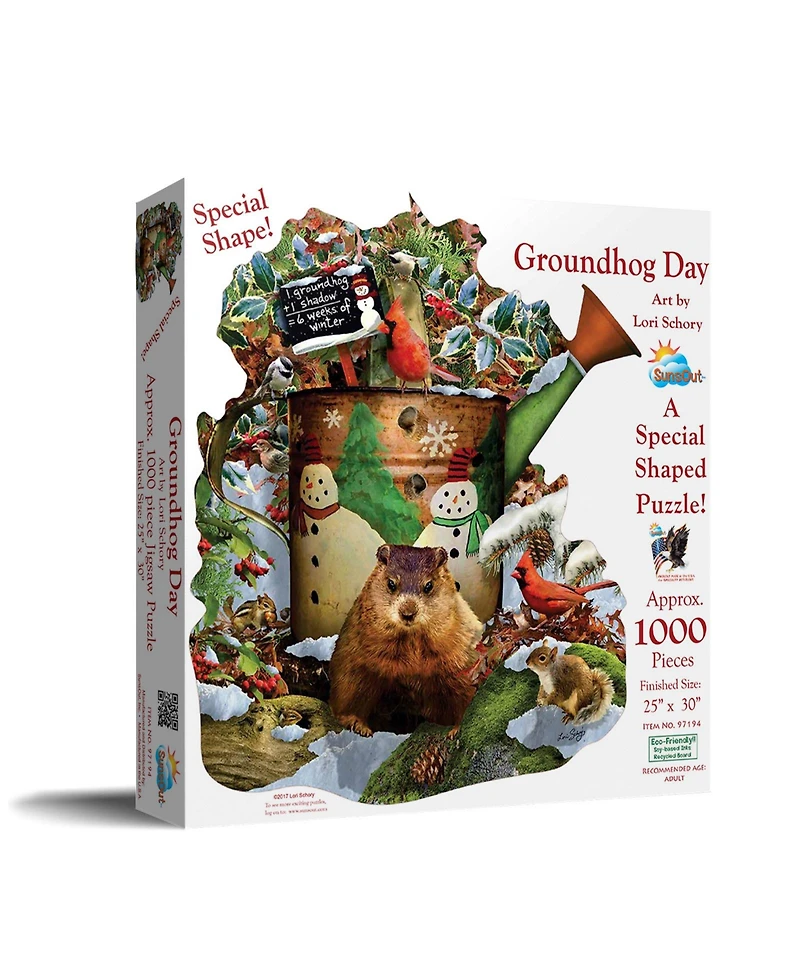 Enjoy a rewarding puzzle experience with the SunsOut 1000 Piece Special Shape Jigsaw Puzzle for adults titled "Groundhog Day." Featuring artwork by Lori Schory, This puzzle showcases Animals themes, combining expressive artwork and detailed visual elements that appeal to collectors and hobbyists. The imagery adds depth and interest for fans of Animals-inspired designs. It also incorporates seasonal elements inspired by Groundhog Day, adding festive appeal to the completed display. The completed size is 25" x 30", offering a visually appealing display once completed. Each piece fits securely to support a smooth and satisfying puzzling experience. For adults and ages 15 and older.