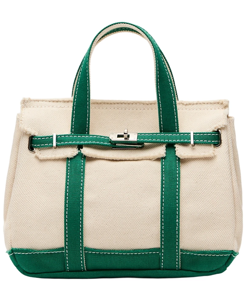 Compact charm defines this Sunwin Madaket mini classic tote bag, designed with a turn-lock belted flap closure in silver-tone hardware for secure storage. Two slip pockets and canvas lining combine with top handles and short shoulder straps for convenient, everyday use.