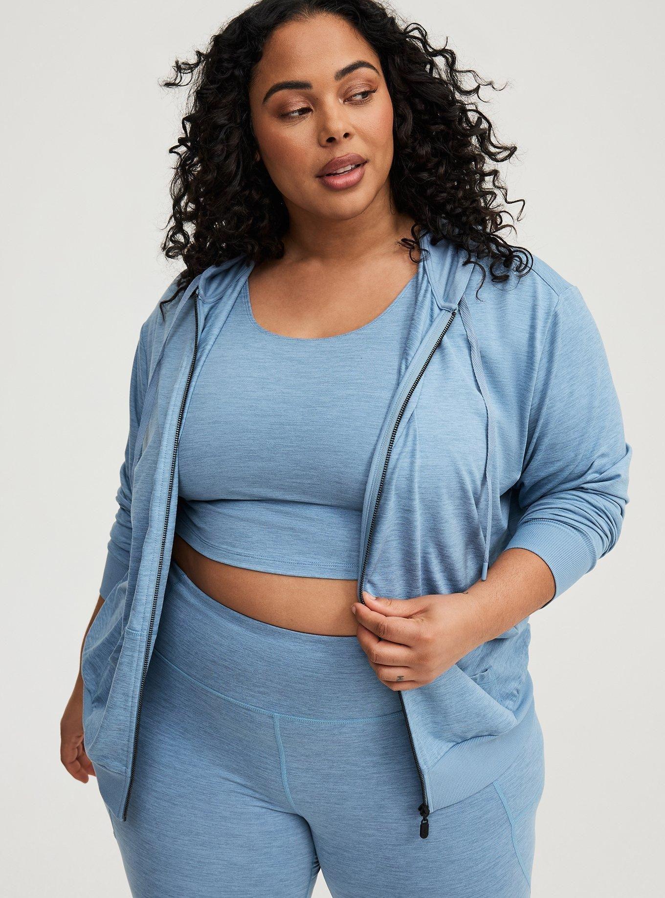 FIT Measures 30"" from shoulder. MATERIALS + CARE Super Soft Performance Jersey knit fabric: A soft, sueded fabric that stretches and moves with every adventure. Stretch level: Maximum 4-way stretch so you can move without restrictions. Brushed finish for a touchably peachy-soft feel. Breathable to keep you cool. Moisture wicking keeps you dry. Light compression. 82% polyester, 18% spandex. Machine wash cold. Tumble dry low. Imported. DETAILS Hooded neckline with drawstring. Long sleeves. Ribbed trims. Split kangaroo pocket. Zipper closure.