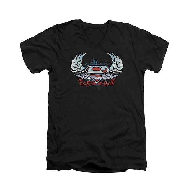 Superman Mens Chrome Wings Shield Short Sleeve Adult V Neck Tee / T-Shirt