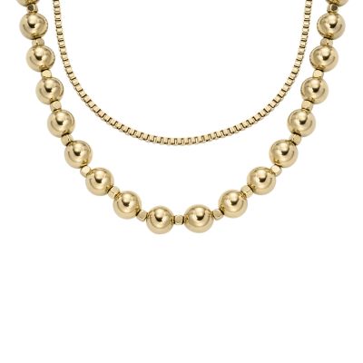 All Stacked Up Gold-Tone Stainless Steel Beaded Necklace