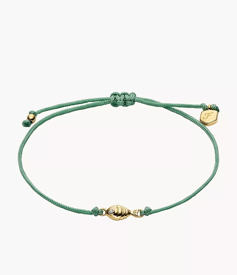 Add some color to your stack! This bracelet features a delicate fish charm in polished gold-tone brass. A colored cord with a slider closure allows for easy adjustability, ensuring a comfortable and secure fit.