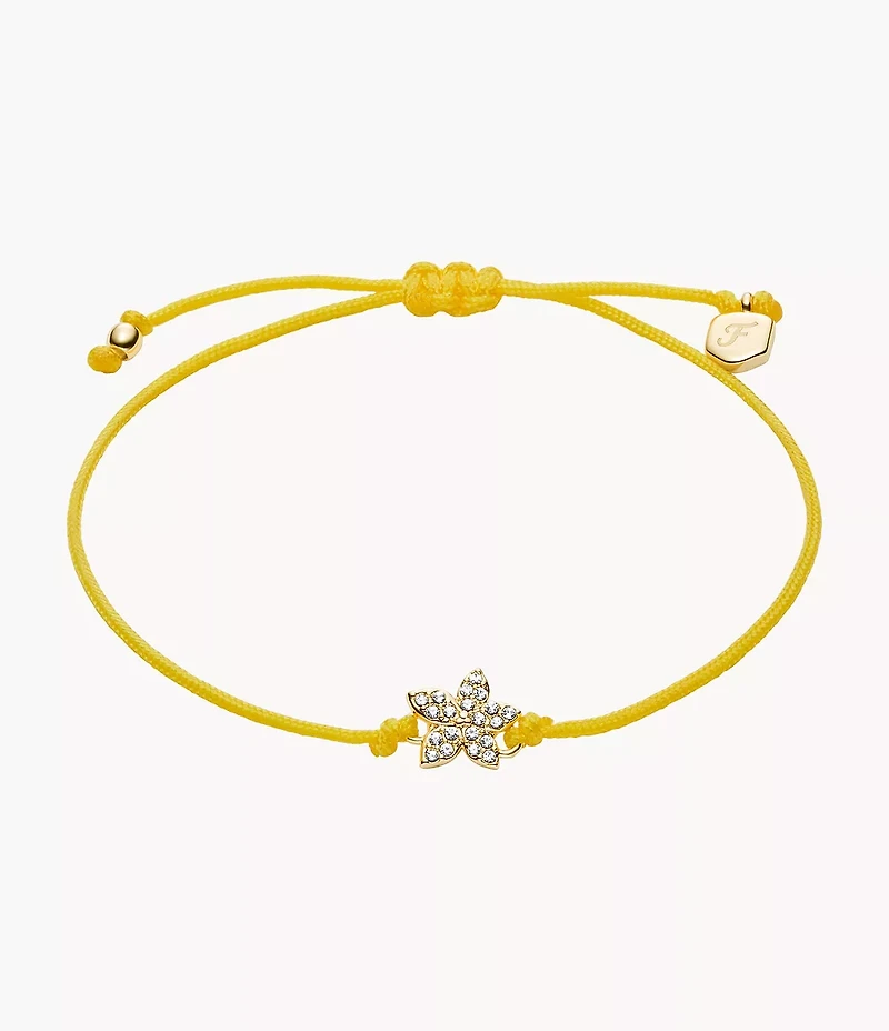 Add some color to your stack! This bracelet features a delicate pavé flower charm in polished gold-tone brass. A colored cord with a slider closure allows for easy adjustability, ensuring a comfortable and secure fit.
