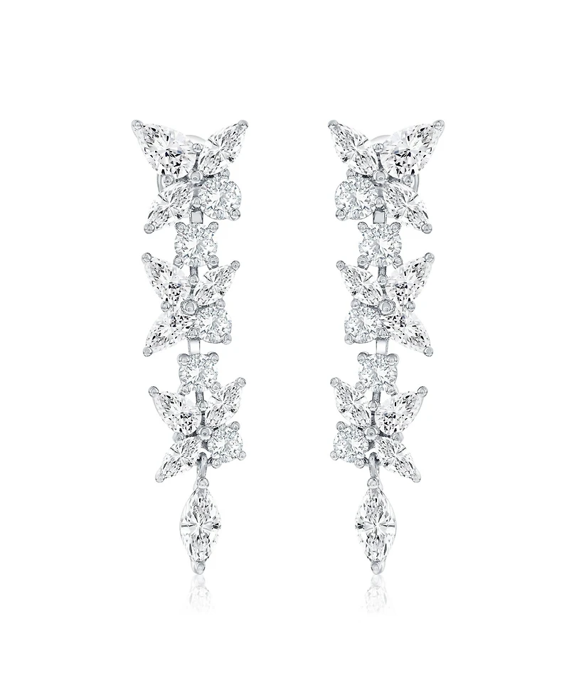 Suzy Levian New York Gala Collection Sterling Silver Multi-Cut Cluster Cubic Zirconia Dangle Drop Earrings