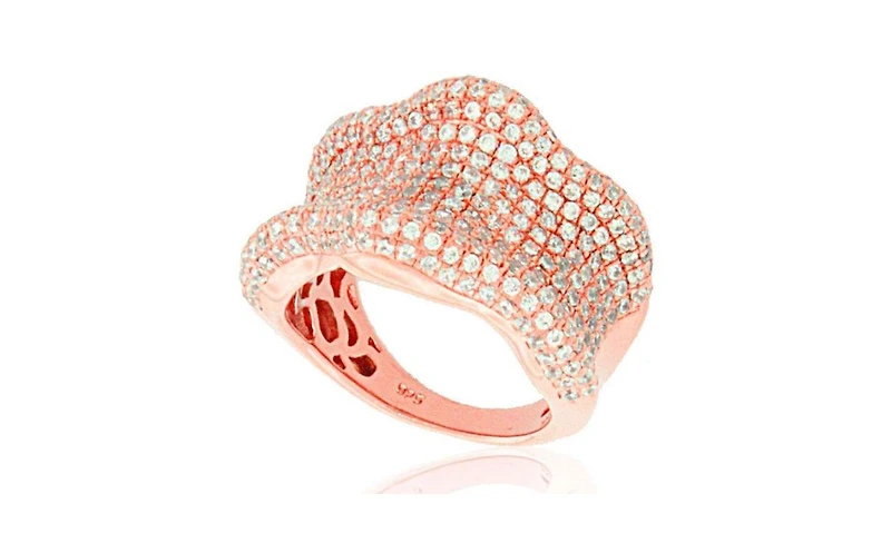 Suzy Levian New York Suzy Levian Sterling Silver Cubic Zirconia Wavy Curved Ring