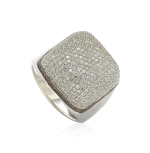 Suzy Levian New York Suzy Levian Sterling Silver Cubic Zirconia Pave Diagonal Puff Ring