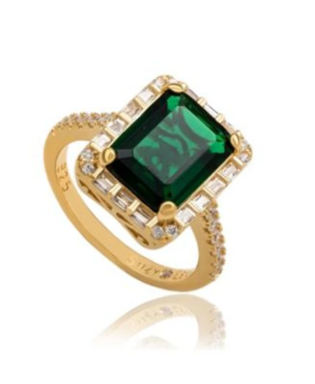 Suzy Levian Sterling Silver Emerald-Cut Cubic Zirconia Baguette Halo Ring