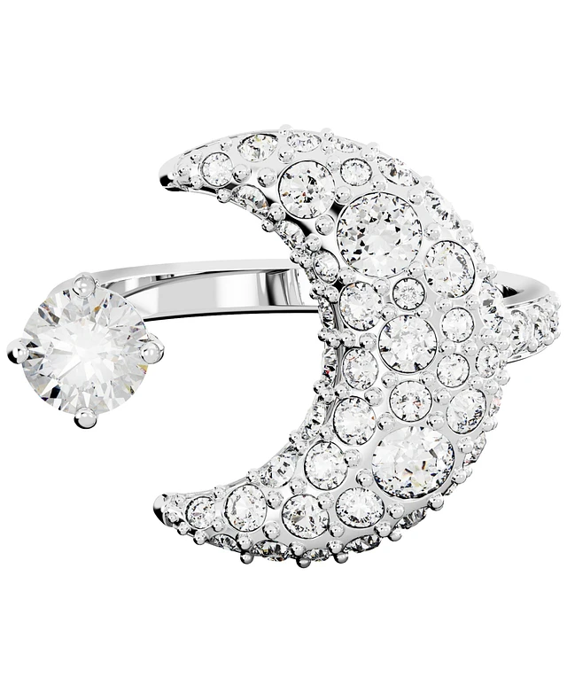 Swarovski Silver-Tone Luna Crystal Moon Open Ring