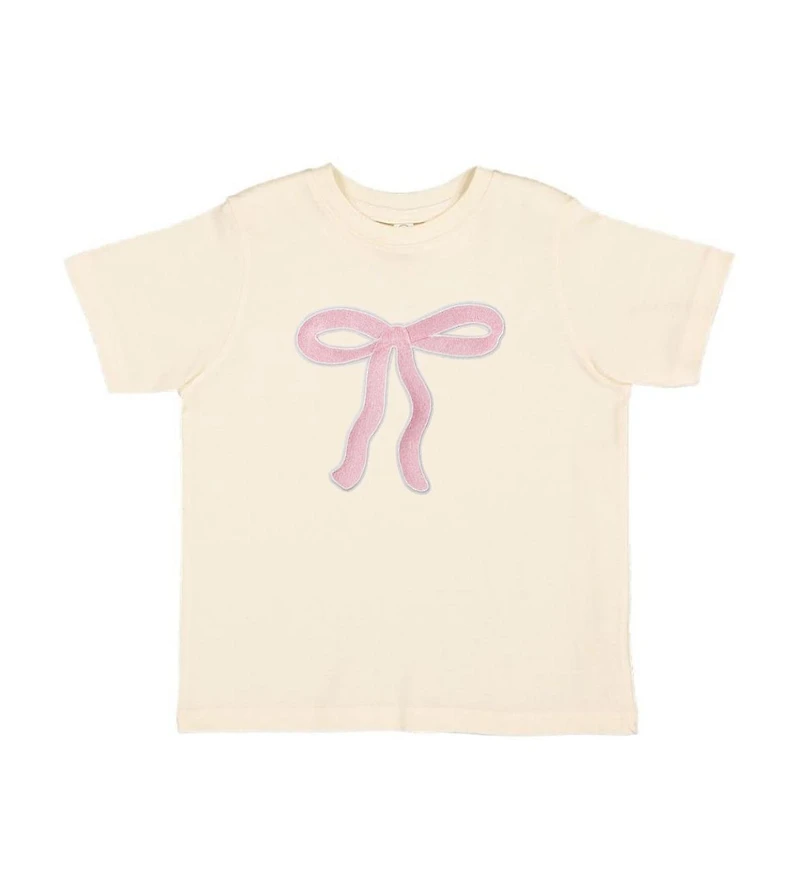 The Coquette Bow Patch Short Sleeve T-Shirt is a cute and trendy t-shirt for kids inspired by the latest bow trend!