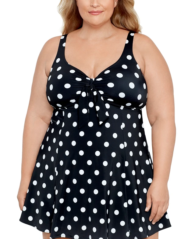 Swim Solutions Plus Tummy Control Bow Front Swimdress, Created For Macy's