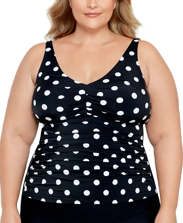 Swim Solutions Plus Tummy Control V-Neck Polka Dot Tankini Top, Created for Macy's