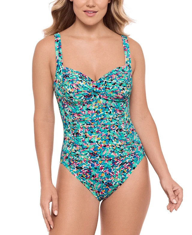Swim Solutions Women's Twist-Bodice Tummy-Control Swimsuit, Exclusively at Macy's