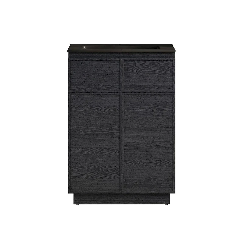 Swiss Madison St. Tropez 24" Freestanding Bathroom Vanity in Black Oak with Black Sink Top