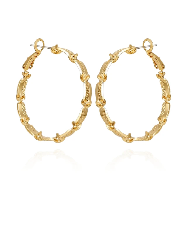 T Tahari Gold-Tone Textured Rounded Hoop Earrings