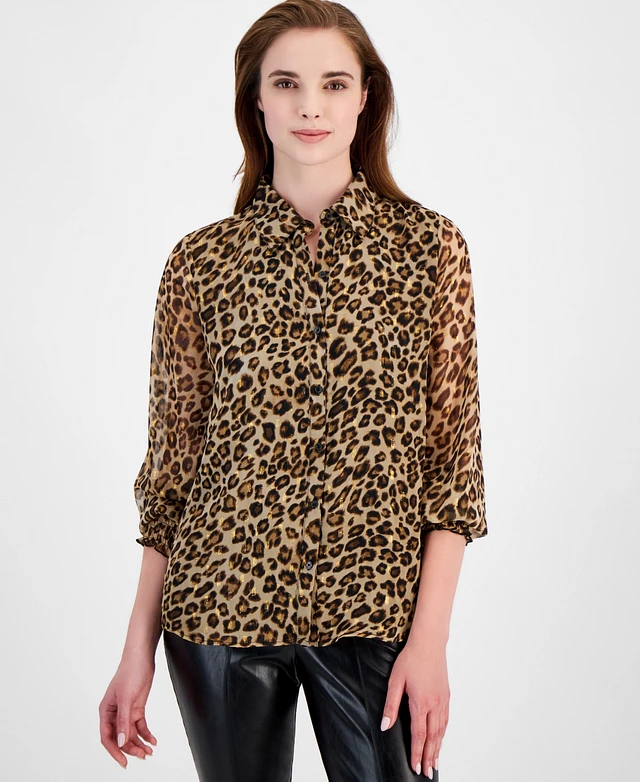 T Tahari Women's Animal-Print Button-Front Blouse