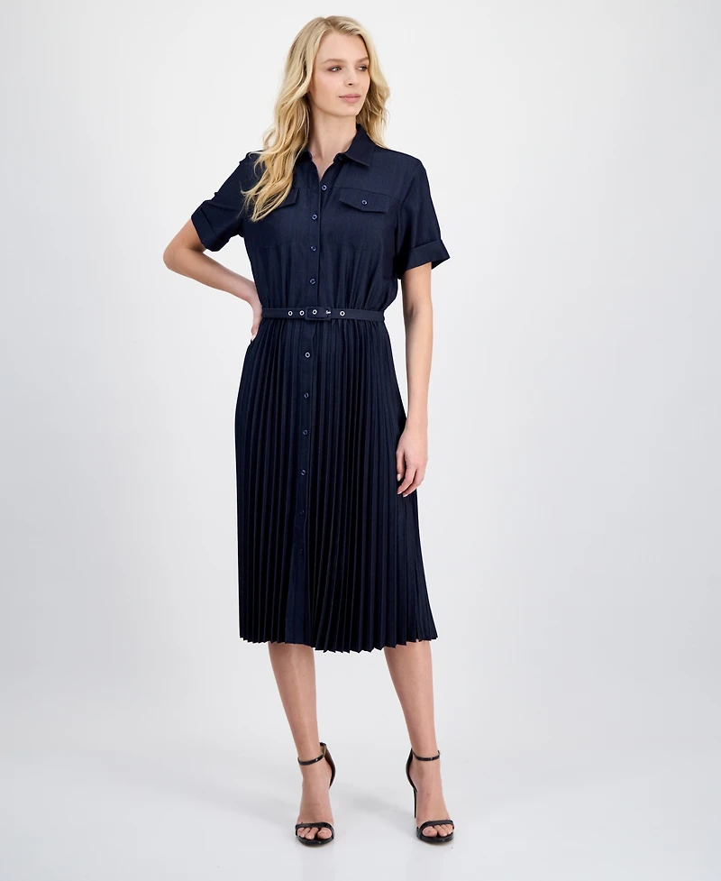 T Tahari Women's Belted Button-Front Midi Dress