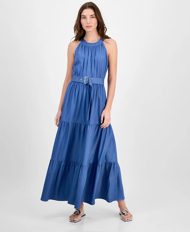 T Tahari Women's Tiered Fit & Flare Halter Maxi Dress