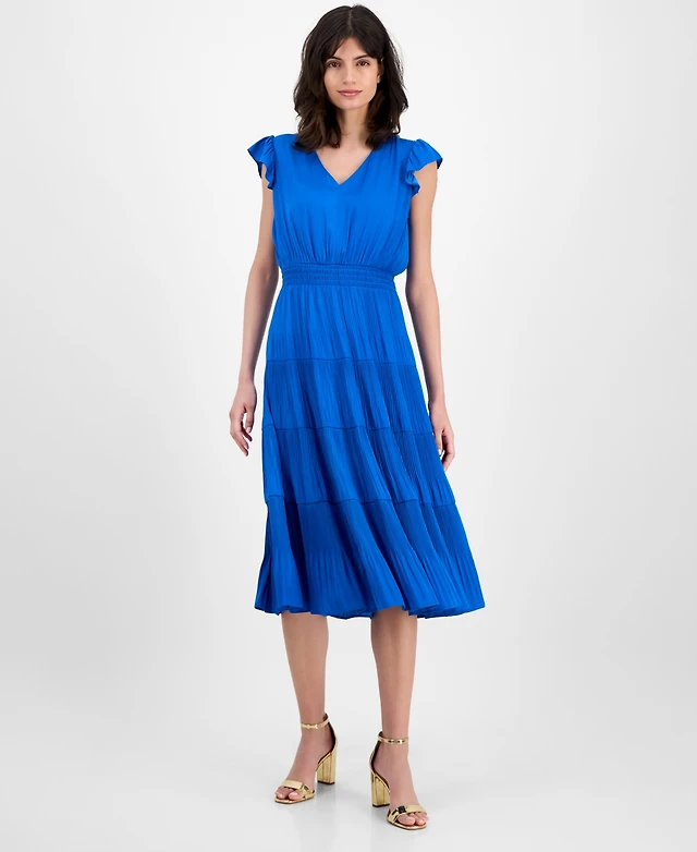 T Tahari Women's Tiered V-Neck Flutter-Sleeve Midi Dress