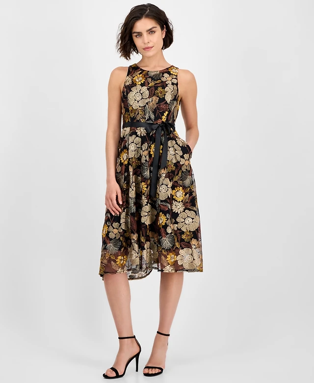 Tahari Asl Petite Embroidered Sleeveless Fit & Flare Dress