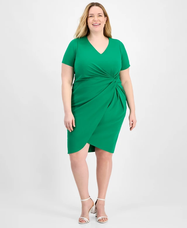 Tahari Plus Size V-Neck Twist-Detail Short-Sleeve Sheath Dress