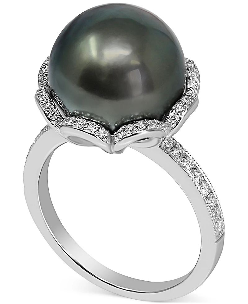 Tahitian Pearl (12mm) & Diamond (1/3 ct. t.w.) Ring in 14k White Gold in San Juan, PR