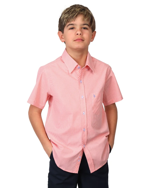 Tailorbyrd Big Boys Signature Micro Gingham Short Sleeve Shirt