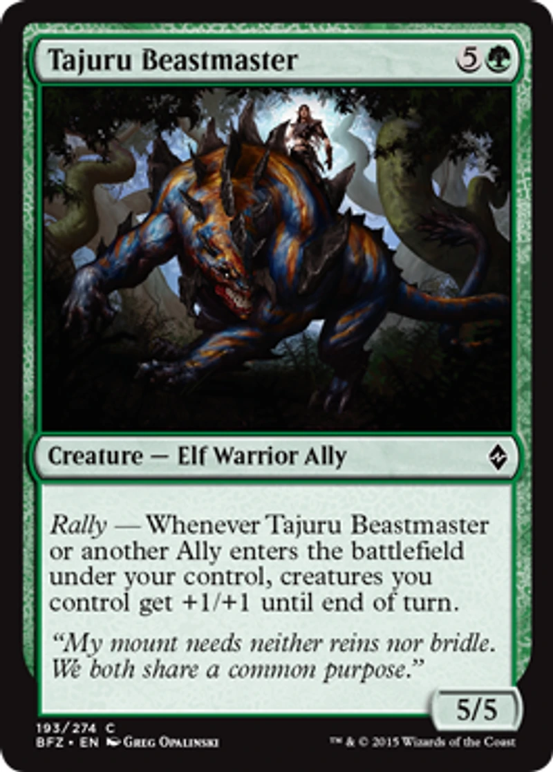 - Whenever Tajuru Beastmaster or another Ally enters the battlefield under your control