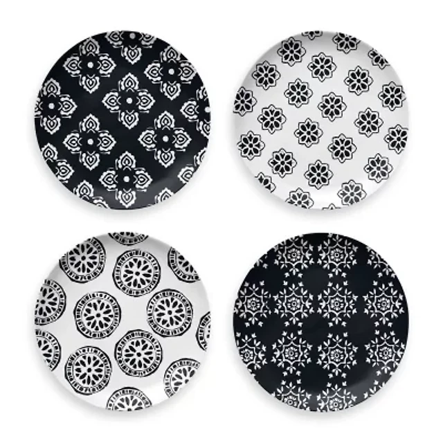 Abode Homewares Black Medallion Melamine Salad Plates, Set of 4