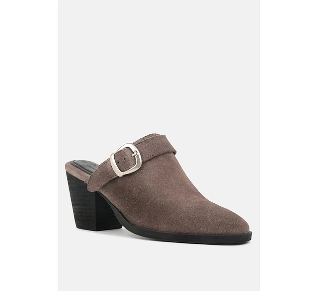 Tarrah Black Stacked Heel Mules with Adjustable Buckle
