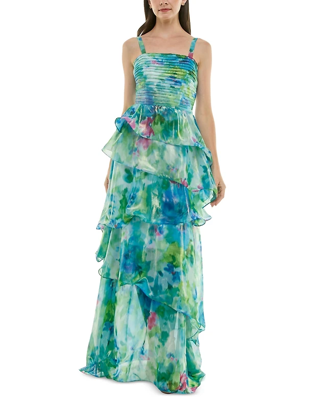 Taylor Women's Pleated-Bodice Tiered Chiffon Gown