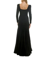 Taylor Women's Rhinestone-Trim Long-Sleeve Gown