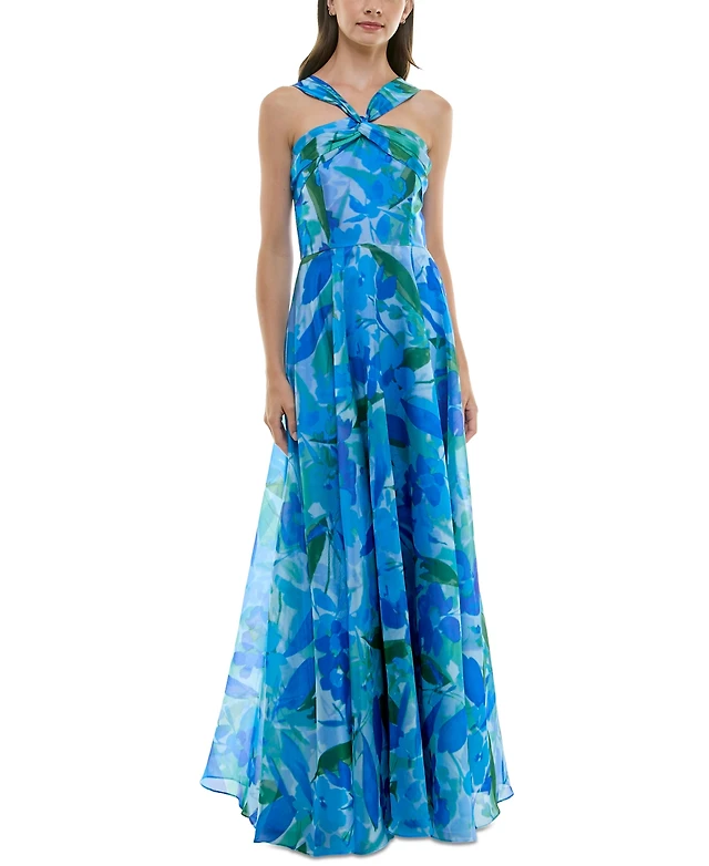 Taylor Women's Twisted Halter Printed Sleeveless Gown
