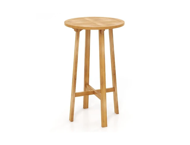 Teak Wood Round Bar Table with Footrest for Indoors Outdoors