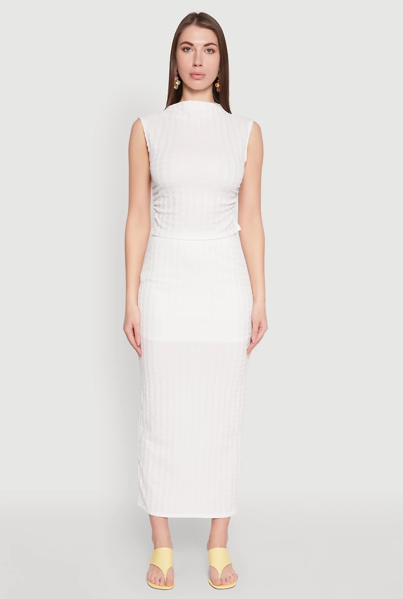 Textured Knit High Waisted Maxi Skirt