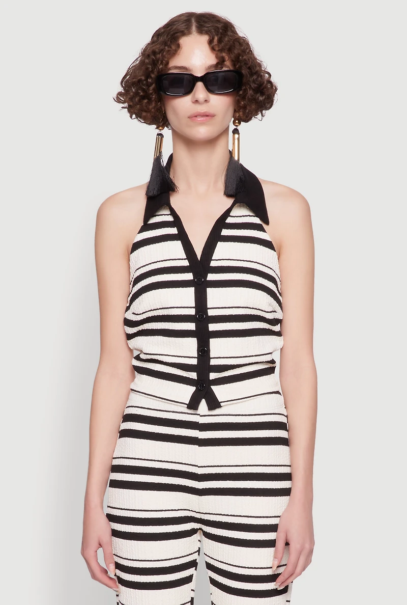 Textured Knit Striped Cropped Halter Top in San Juan, PR
