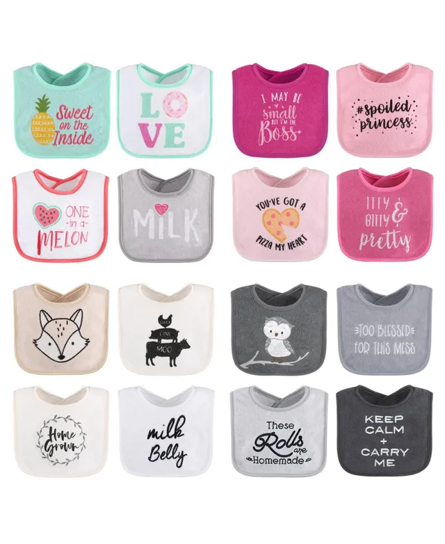 The Peanutshell Baby Girls Terry Bibs, 16 Pack for Feeding, Teething, or Drooling Foods/Neutral Theme