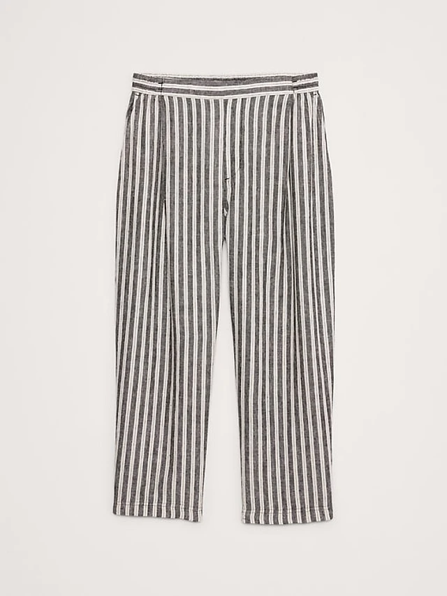 9.5" Herringbone Linen-Cotton Pleated Pull-On Short