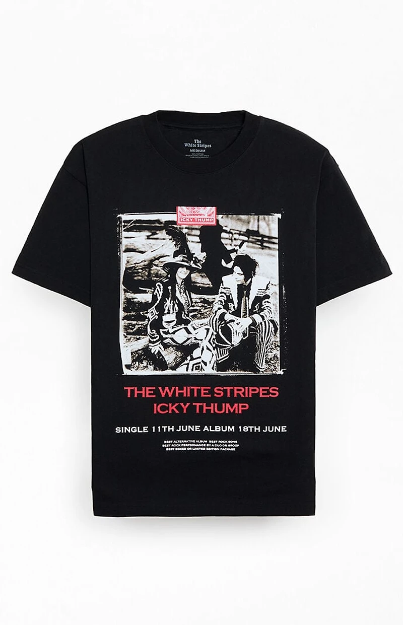 The White Stripes Icky Thump T-Shirt brings iconic garage-rock style with bold, statement-making graphics. It features short sleeves, a crew neckline, and a striking Icky Thump graphic on the front.