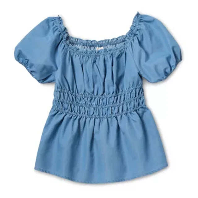 Thereabouts Little & Big Girls Square Neck Short Sleeve Blouse