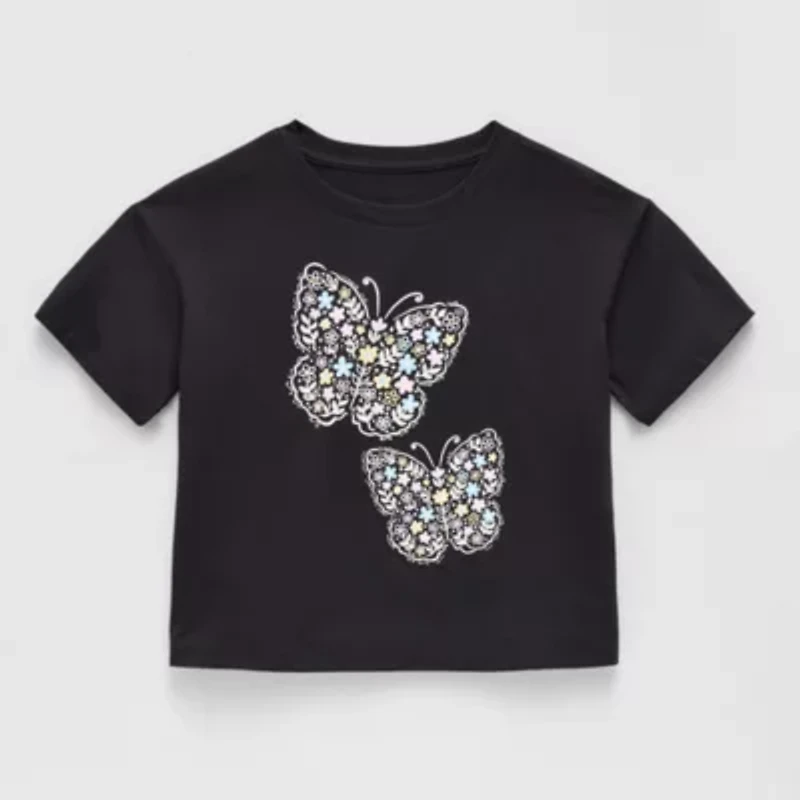 Thereabouts Little & Big Kid Girls Crew Neck Short Sleeve Boxy Fit Graphic T-Shirt