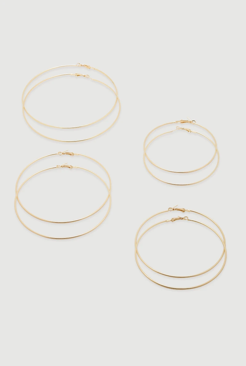 Thin Metallic Hoop Earrings Set of 4Thin Metallic Hoop Earrings Set of 4